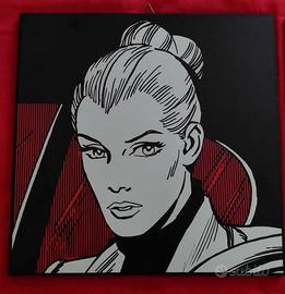 Set di tre quadretti in legno (30 cm per lato, misure in foto) con soggetti Diabolik ed Eva Kant.