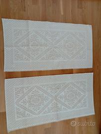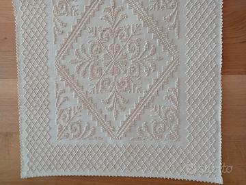 Set di 3 tappeti di colore beige chiaro, con sobrio ricamo a effetto geometrico, coordinati ma vendibili anche singolarmente: