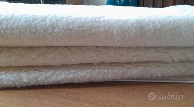 Vendo set di tre tappeti in vello 100%, pura lana merinos, con fondo antiscivolo, nuovi. Le pieghe che si vedono vanno via con l'utilizzo.