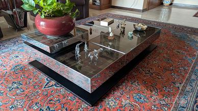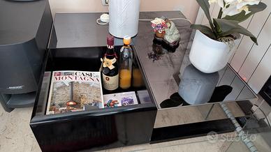 Materiali: Legno laccato nero, vetro fumé specchiato, metallo cromato