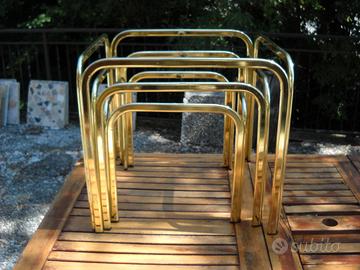 Vendo elegante set di 3 tavolini vintage con struttura in metallo dorato, manca solo il ripiano in vetro. Ideali per chi ama il restauro o desidera personalizzarli secondo il proprio stile (vetro, legno, marmo, ecc.).