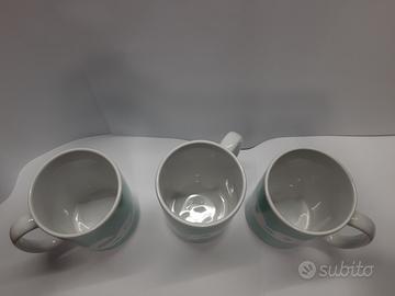 Set 3 tazze Vespa in ceramica, color tiffany chiaro, usate ma ben tenute, h 11,5 cm diametro 8,5 cm.