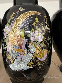 SET 3 VASI CINESI IN CERAMICA BLU NOTTE DECORATI ALTEZZA CIRCA 50 CM