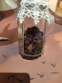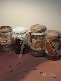 Set 4 barattoli portaspezie decorati , 3 con coperchio misure nelle foto, uno contiene pot pourri