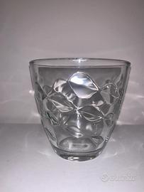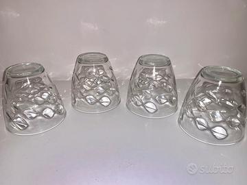 Vendo quattro bicchieri in vetro trasparente con decorazioni in rilievo. Marca Bormioli Rocco, Made in Italy. Poco utilizzati.