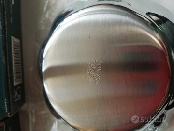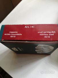 Set di 4 coppette in acciaio inox 18/10. Diametro superiore cm 11. Ideali oer aperitivo. Marchio Ilsa, design elegante e raffinato, dal bordo ondulato. Articoli assolutamente nuovi nella loro confezione originale.