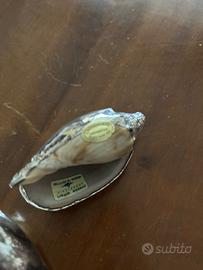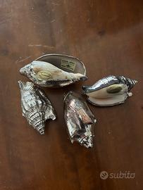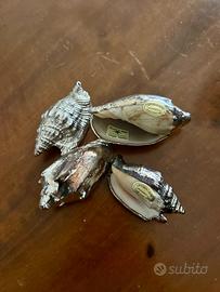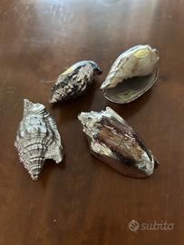 Bellissimo set di quattro conchiglie decorate con finitura argentata. Perfette come elementi decorativi.
