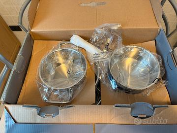 Vendo set composto da 4 pentole WMF mod. Profi Plus in Cromargan 18/10 acciaio inox. La scatola è un po’ rovinata ma il contenuto è integro in tutte le sue parti.