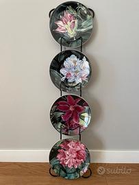 Nuovo, regalo riposto in cantina, mai sballato né tantomeno utilizzato. 4 piatti in fine porcellana. L’altezza della piattaia è di 90 cm e i piatti hanno diametro 20 cm. Ancora nella loro scatola imballati come quando mi sono stati regalati.