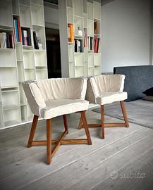 Collezione GERVASONI set composto da 4 poltroncine GRAY 26 struttura in noce canaletto e rivestimento sfoderabile lino prezzo originale di vendita Italia 3500, prezzo vendita online 2600 +euro 100 consegna standard Italia shipping in Europe euro 200 nella foto divano gervasoni ghost tavolino konll, sedie KARTELL TAVOLO porro vaso fontana arte libreria kriptonite divnao B&B italia maxalto tappeto boffi depadova