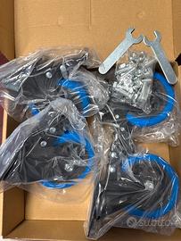 Set di 4 Ruote Blu Girevoli Piatte da 100mm con Freno - Ruote per Mobili e Pallet Fino a 600KG - Rotazione a 360° e Antigraffio - Ideali per Spostare Carichi Pesanti