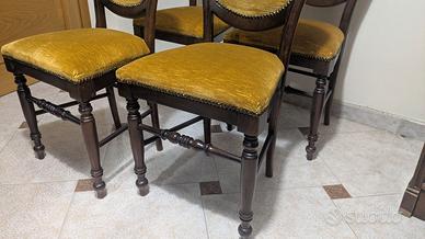Set di 4 sedie in stile classico a medaglione, Velluto Oro e Legno Pregiato. Sedia singola: 60 € Set completo (4 sedie): 150 €