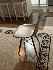 4 sedie da pranzo stile scandinavo in polipropilene colore ecru e gambe di legno. Prsticamente nuove.