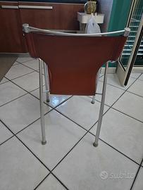 Vendo set di 4 sedie dal design moderno, struttura in metallo satinato con seduta e schienale in pelle/ecopelle color marrone cuoio. Le sedie sono molto comode e robuste, perfette per cucina o sala da pranzo. Il design è elegante e si adatta facilmente sia ad ambienti moderni che più classici. Condizioni buone, come da foto. Presentano solo normali segni di utilizzo sulla struttura, ma sono perfettamente stabili e utilizzabili. Vendita preferibilmente in blocco (4 sedie). Ideali per: cucina sala da pranzo studio o ufficio Preferibile ritiro a mano, spedizione possibile a carico dell’acquirente da concordare.