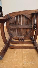 Set 4 Sedie in legno teak massello, stile coloniale, con schienale a doghe verticali, seduta con doghe curve orizzontali. Ritiro a carico dell'acquirente. Zona: Roma centro - Metro Manzoni