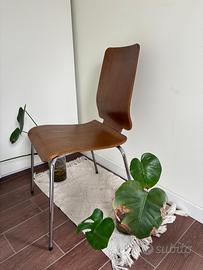 Seduta e schienale in multistrato curvato con impiallacciatura in legno vero. Struttura in tubolare di acciaio cromato.