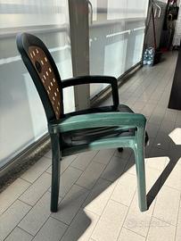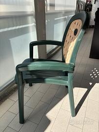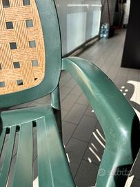 Vendo set di 4 sedie/poltroncine da esterno modello "Magnifica". Struttura robusta in resina color verde bosco con elegante inserto sullo schienale a effetto paglia intrecciata (beige). NON si effettua spedizione. Esclusivamente scambio a mano in zona Torino Nord (o zone limitrofe da concordare).