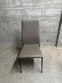 Vendo 4 sedie da interno dal design semplice e moderno, con struttura in metallo nero e seduta/schienale imbottiti rivestiti in similpelle color tortora/grigio.