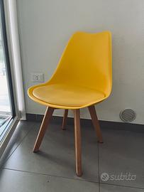 Set 4 sedie gialle in polipropilene, cuscino similpelle e gambe di legno