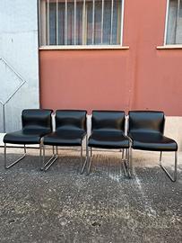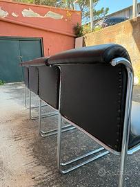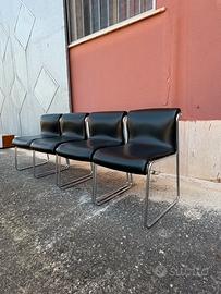 Set 4 Sedie Pelle Nera e Acciaio Cromato - Vintage