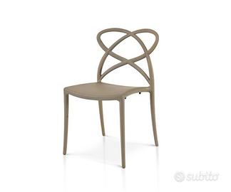 Set di quattro sedie per interni impilabili colore grigio caldo in polipropilene, due senza braccioli (art. 910) e due con braccioli (art. 913). Struttura e sedile in polipropilene.