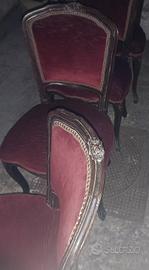 Eleganti sedie d'epoca con struttura in legno massello intagliato a mano e dettagli decorativi .