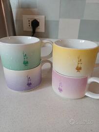 Vendo originale set di 4 tazze Bialetti impilabili con pratico supporto metallico salvaspazio, come da foto. Design colorato con sfumature pastello (lilla, rosa, giallo e verde), perfette per caffè lungo, cappuccino o tè ☕