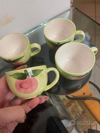 SET 4 TAZZE CERAMICA VERDE DECORAZIONE FRUTTA DIPI