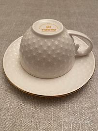 il set comprende 4 tazze 250ml con piattino dalla particolare lavorazione come da immagini in scatola originale - color panna con profili oro.