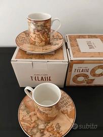 Elegante set di 4 tazzine con piattini, perfetto per gustare un caffè. Design unico con stampa mappa geografica. Realizzate in porcellana di alta qualità. Disponibili più pezzi (fino a 9 coppie). Prezzo speciali per acquisti maggiori di 2 coppie