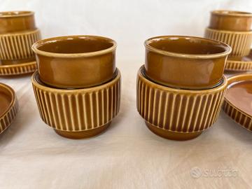 Splendido set di 4 tazzine e 4 piattini da caffè smaltati dell' elegante collezione Ambrosia, firmata dall'azienda italiana TOGNANA nei primi anni '70.