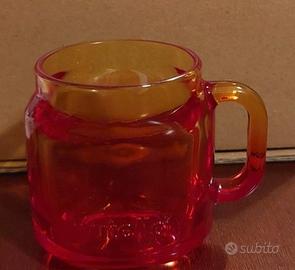Vendo splendido set completo di 4 tazzine in vetro colorato, collezione limitata "Quelli della Colazione" Nutella e Kinder 2025.