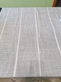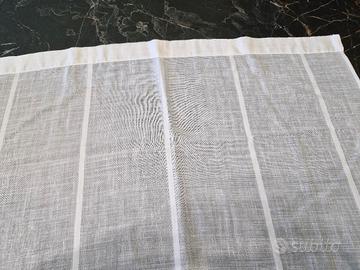 Set di 4 tende a pannello in tessuto leggero semitrasparente, colore bianco, con eleganti righe verticali tessute. Cotone/misto lino.
