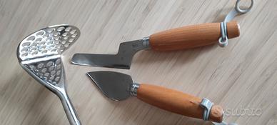 Elegante set da cucina composto da 4 utensili in acciaio con manico in legno: