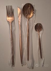 In vendita set di posate da 48 pezzi in acciaio inossidabile con raffinata finitura oro rosa.
