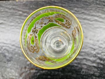 • Condizioni: Ottime condizioni vintage. Il vetro è integro, senza scheggiature. Le decorazioni dorate sono ben conservate, mantenendo la loro brillantezza originale.
