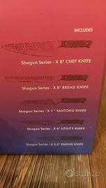 Vendo set di 5 coltelli più ceppo di acacia portacoltelli della dalstrong, modello shogun series x.