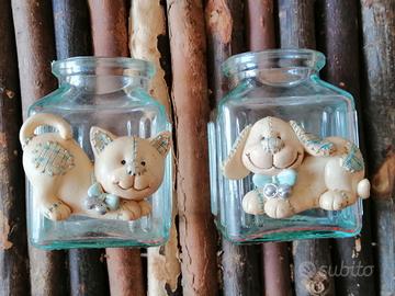 5 Contenitori per spezie decorati. Molto carini, vasetti in vetro di varie dimensioni con applicazioni in resina colorata.