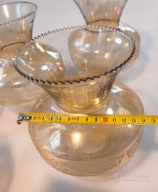Dettagli: Bordo superiore smerlato e perlato, decoro a stencil bianco sulla pancia del vetro.