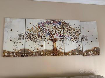 Come da titolo vendo 5 quadri che rappresentano l' albero della vita come nuovi, 4 mesi dall' acquisto. L'ultimo quadro a destra della foto risulta più basso per abbassamento della puntina di appoggio.