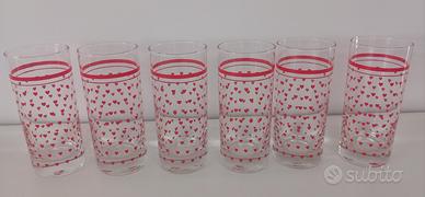 set 6 bicchieri per acqua cocktail a cuoricini rossi