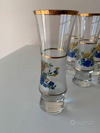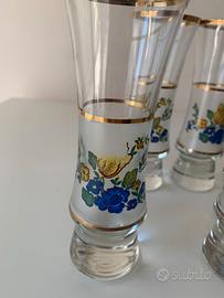 Set di 6 bicchieri da liquore eleganti, decorati con motivo floreale e raffinato filo dorato sul bordo. Ideali per servire liquori con stile o per arricchire una tavola classica.