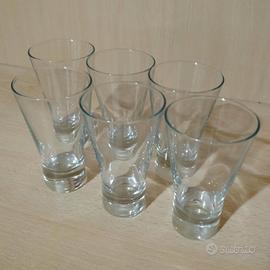 Set di bicchieri in vetro caratterizzati da una forma svasata conica e una base spessa.