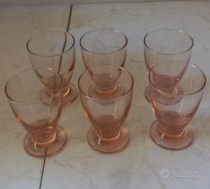 Set di 6 bicchieri in vetro con sfumatura rosa tenue. Design semplice e elegante