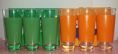 Set composto da 6 bicchieri esclusivi in vetro (3 bicchieri bradizzati Fanta e 3 bicchieri brandizzati Sprite) e relative scatole. Nuovo e da collezione.