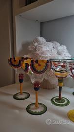 Bellissimo set di 6 bicchieri margarita colorati, stile fatto a mano con dettagli dipinti. Venduti insieme (non separatamente). Ideali per cocktail, vino, aperitivi o come elemento decorativo per la casa. Perfetti per feste, serate con amici o per dare un tocco vivace alla tavola. Condizioni: usati, in ottimo stato, senza crepe o rotture. Puliti e pronti all’uso. Design originale e colori vivaci che rendono ogni bicchiere unico.