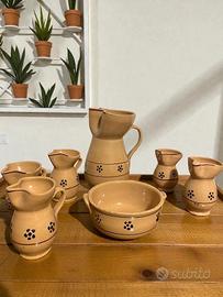 Bellissimo set di ceramica artigianale composto da sei brocche e una ciotola.
