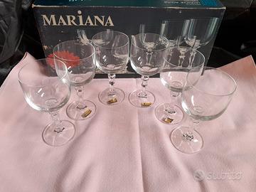 Set 6 calici, 15,5 cm, Cristallo di Boemia "Mariana" Vintage anni '80, nuovo con scatola originale.