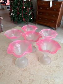 Set di 6 coppe in vetro satinato color rosa con bordo ondulato, dal fascino vintage. Ideali come coppe da gelato, dessert, macedonia o yogurt. Design elegante e decorativo, perfette anche come oggetti d’arredo per una tavola retrò. Condizioni: ottime, senza sbeccature o crepe. Vendute in set completo da 6. Per qualsiasi domanda, contattami! #vintage #coppe #vetrorosa #rosa #dessert #gelato #anni50 #anni60 #retrò