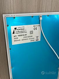 Cornice in lega di alluminio verniciata a polvere di colore bianco e diffusore opale ad altissima trasmittanza, con luminanza uniforme.